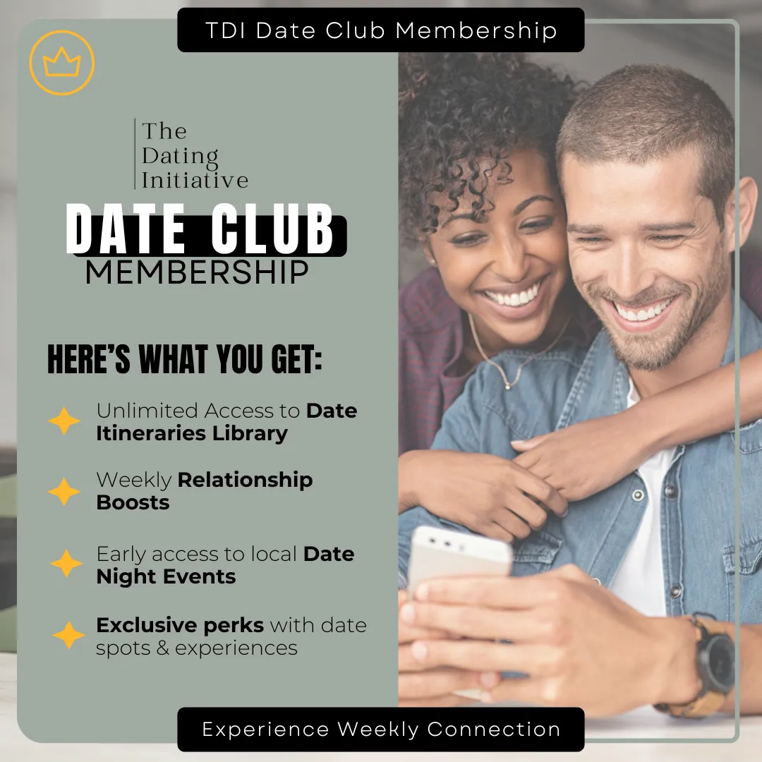 The first step is to join our club. You'll get unlimited access to our Date Itineraries, relationship resources, and best of all: our TDI Perks & Partners page (full of discounts to date spots & experiences!)